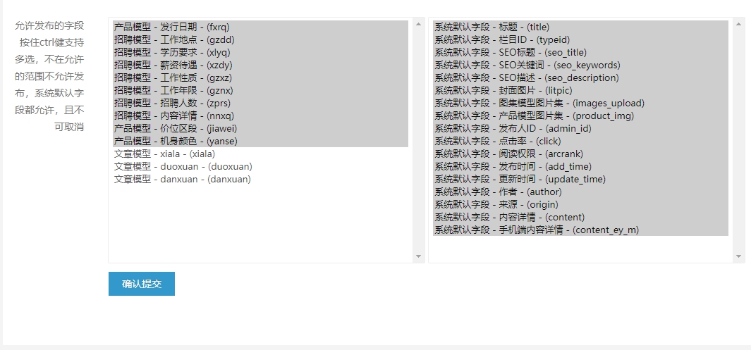 - 说明2:用户自定义添加的字段,如果不在允许的范围内,传的数据有带这个字段是不允许被发布的!